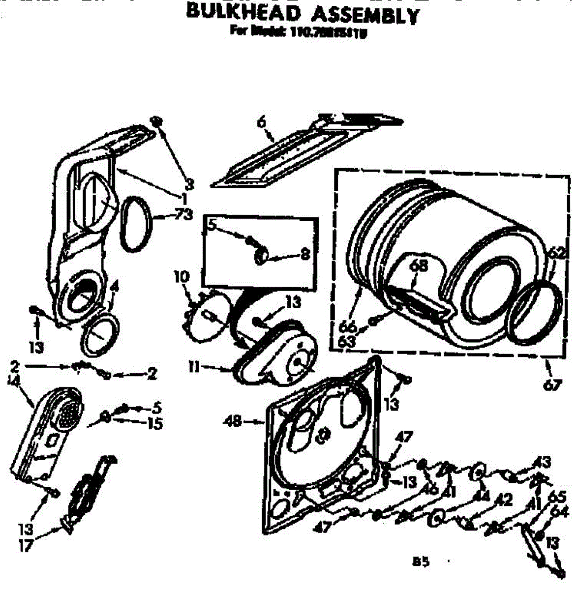 Replacement drum front bulkhead for dryers. Installs at the front of the drum assembly. Needed when original is cracked, damaged, or worn out.