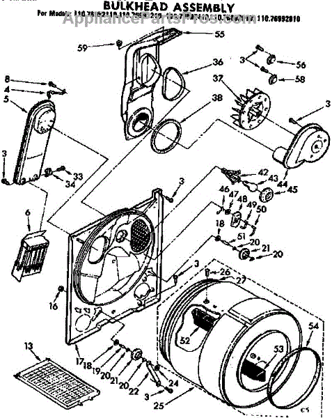 Seals the rear of the dryer drum to prevent hot air loss and ensure even drying. Replace when worn, cracked, or causing noise. Verify fit by model.