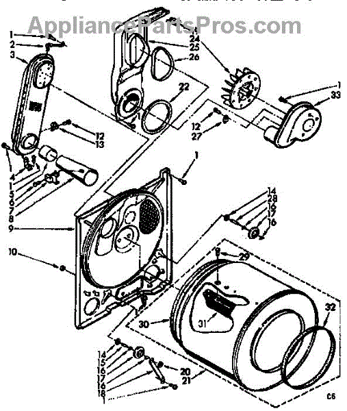 Replacement drum front bulkhead for dryers. Installs at the front of the drum assembly. Needed when original is cracked, damaged, or worn out.