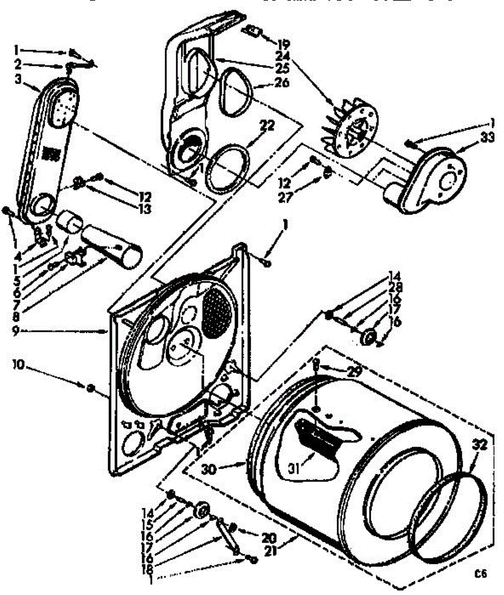 Seals the rear drum opening to prevent air leaks and reduce noise. Replace if worn, frayed, or causing rattling sounds. Confirm fit with your model number.