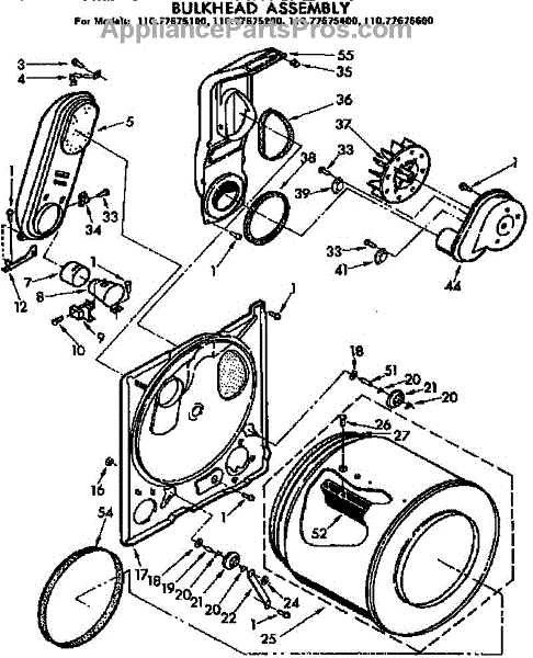 Replacement drum front bulkhead for dryers. Installs at the front of the drum assembly. Needed when original is cracked, damaged, or worn out.