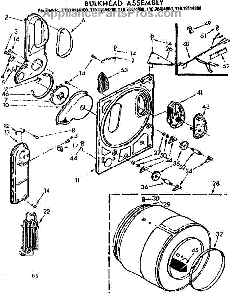 Parts for Kenmore 110.78414100 (11078414100, 110 78414100): Bulkhead Assembly Parts
