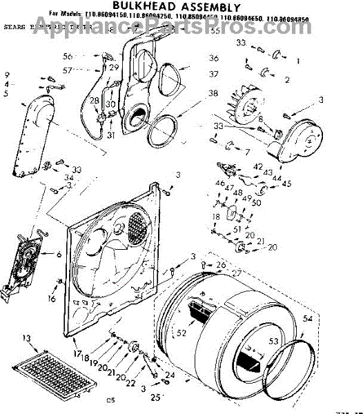 Parts for Kenmore 110.86094450 (11086094450, 110 86094450): Bulkhead Assembly Parts