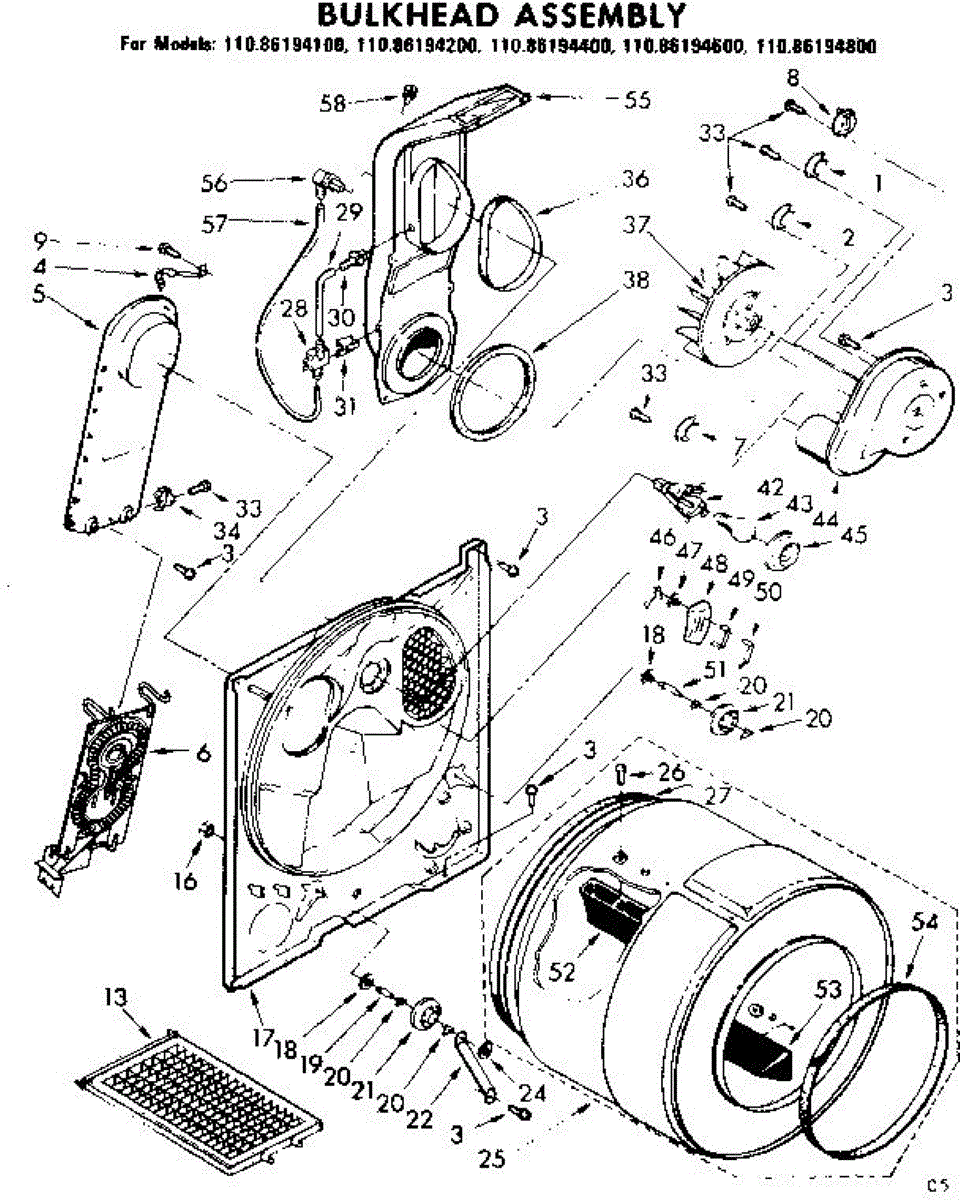 Seals the rear of the dryer drum to prevent hot air loss and ensure even drying. Replace when worn, cracked, or causing noise. Verify fit by model.