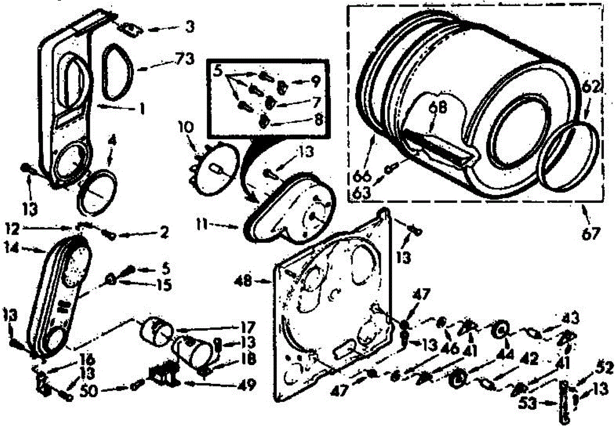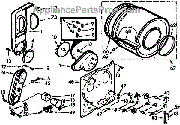 Replacement drum front bulkhead for dryers. Installs at the front of the drum assembly. Needed when original is cracked, damaged, or worn out.