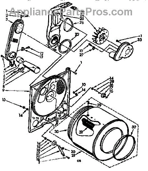 Supports the front drum edge for smooth, quiet rotation. Replace when worn to stop scraping noises or drum wobble. Confirm fit with your model number.