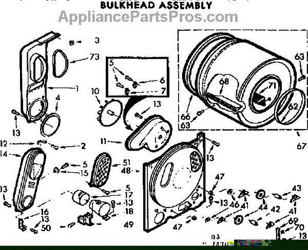 Seals the rear of the dryer drum to prevent hot air loss and ensure even drying. Replace when worn, cracked, or causing noise. Verify fit by model.