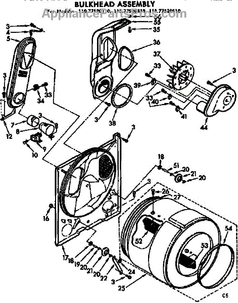 Seals the rear of the dryer drum to prevent hot air loss and ensure even drying. Replace when worn, cracked, or causing noise. Verify fit by model.