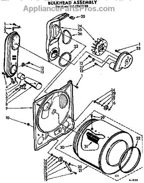 Replacement drum front bulkhead for dryers. Installs at the front of the drum assembly. Needed when original is cracked, damaged, or worn out.