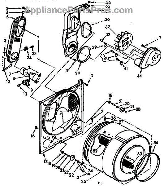 Seals the rear of the dryer drum to prevent hot air loss and ensure even drying. Replace when worn, cracked, or causing noise. Verify fit by model.
