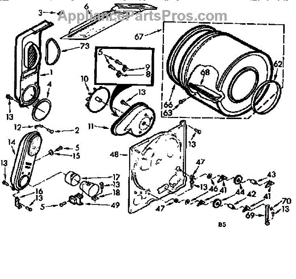 Replacement drum front bulkhead for dryers. Installs at the front of the drum assembly. Needed when original is cracked, damaged, or worn out.