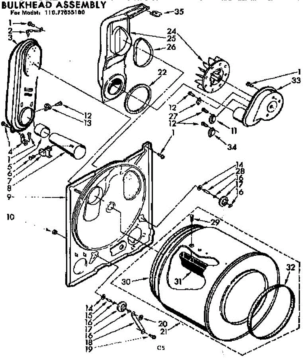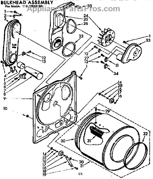 Replacement drum front bulkhead for dryers. Installs at the front of the drum assembly. Needed when original is cracked, damaged, or worn out.