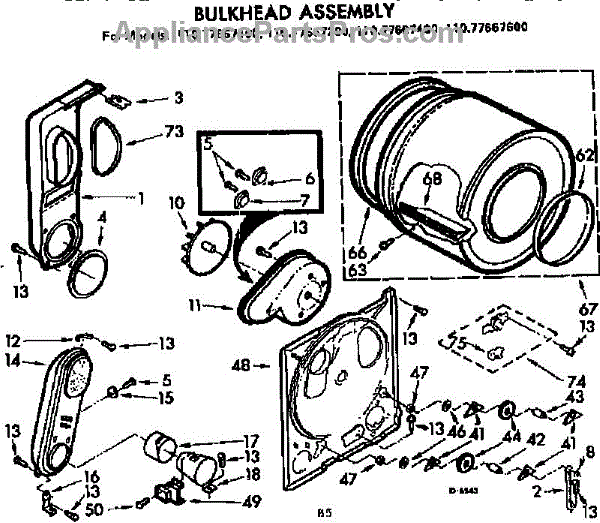 Replacement drum front bulkhead for dryers. Installs at the front of the drum assembly. Needed when original is cracked, damaged, or worn out.