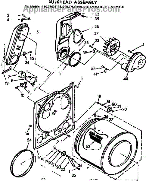 Replacement drum front bulkhead for dryers. Installs at the front of the drum assembly. Needed when original is cracked, damaged, or worn out.