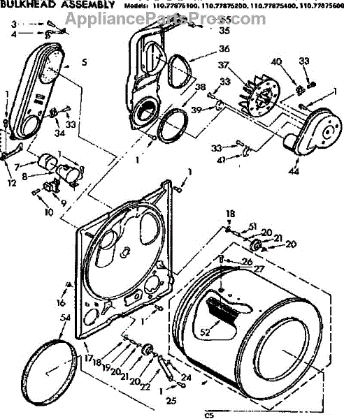 Replacement drum front bulkhead for dryers. Installs at the front of the drum assembly. Needed when original is cracked, damaged, or worn out.