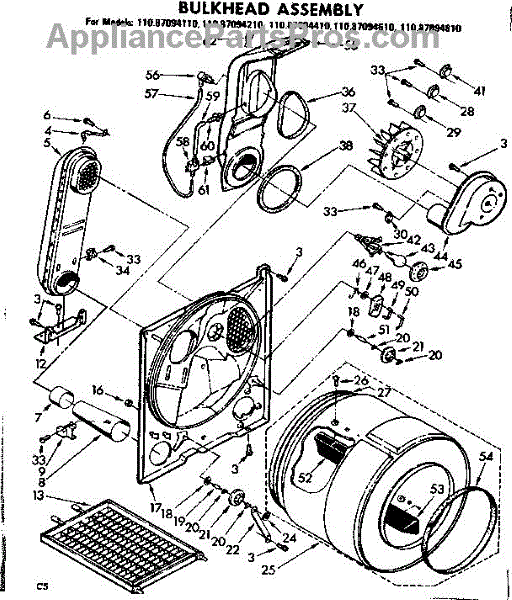 Seals the rear of the dryer drum to prevent hot air loss and ensure even drying. Replace when worn, cracked, or causing noise. Verify fit by model.