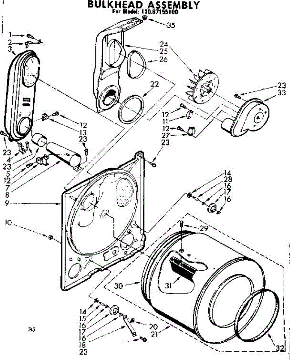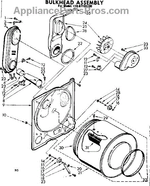 Replacement drum front bulkhead for dryers. Installs at the front of the drum assembly. Needed when original is cracked, damaged, or worn out.