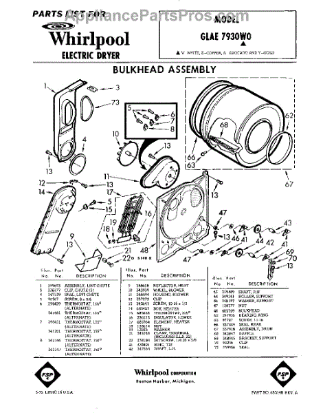Parts for Whirlpool GLAE7930W0: 01 - Bulkhead Assembly Parts