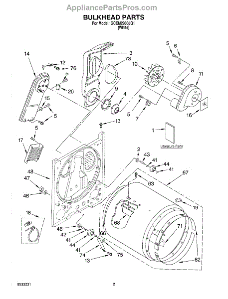 The Dryer Repair Kit is an OEM replacement part for Whirlpool 29-inch large capacity dryer models. It is a kit designed to provide various essential components and hardware needed for common dryer repairs or maintenance tasks.