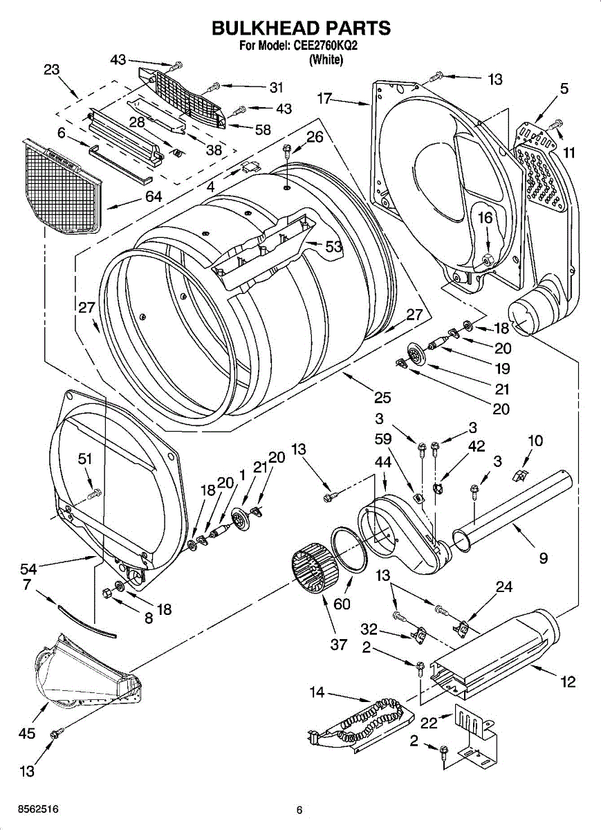 This front drum bulkhead is the stationary front panel that supports the dryer drum and seals the drum opening to maintain proper airflow and drum alignment for reliable drying performance. What it does: