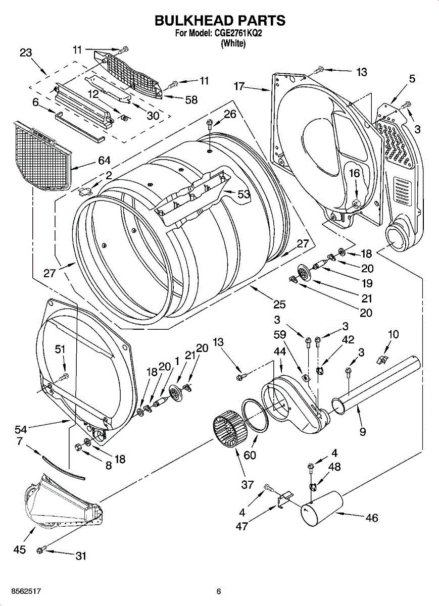This front drum bulkhead is the stationary front panel that supports the dryer drum and seals the drum opening to maintain proper airflow and drum alignment for reliable drying performance. What it does: