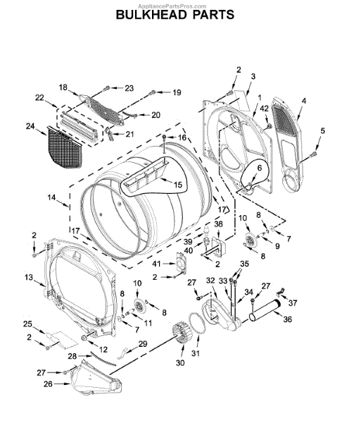 This is a drum assembly used in many home dryers. The component is located inside the appliance and is tasked with holding the clothing during a dryer cycle. It is made of durable materials but can experience wear and tear or damage that cause it to malfunction. If the drum assembly is worn or damaged, it may cause the appliance to buzz or squeal, start and stop, and seize up during use.If the drum assembly is damaged or worn, it will need to be replaced. This will require a set of tools and a pair of work gloves. Before starting the replacement process, make sure the dryer is unplugged from the wall. The dryer will need to be disassembled to access the drum assembly. The belt can be used to pull out the drum so the new component can be installed. Replace the part and reassemble the dryer. It should be plugged back in before use.This part is sold on an individual basis. It is designed to be used with several dryers created by Admiral, Amana, Maytag, Kenmore, and Whirlpool. The drum assembly is an authentic OEM replacement part that is sourced directly from the manufacturer.