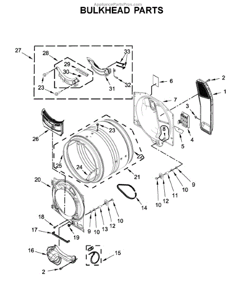 This bulkhead is the front interior panel that supports the drum and helps direct dryer airflow for efficient tumbling and exhaust. It restores proper drum alignment and airflow when the original panel is worn or damaged. What it does: