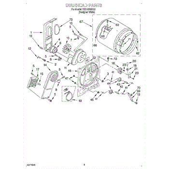 This blower housing assembly directs airflow from the dryer's drum to the exhaust, helping the appliance vent properly for efficient drying. It replaces a damaged or cracked housing to restore correct air path and reduce airflow loss. What it does: