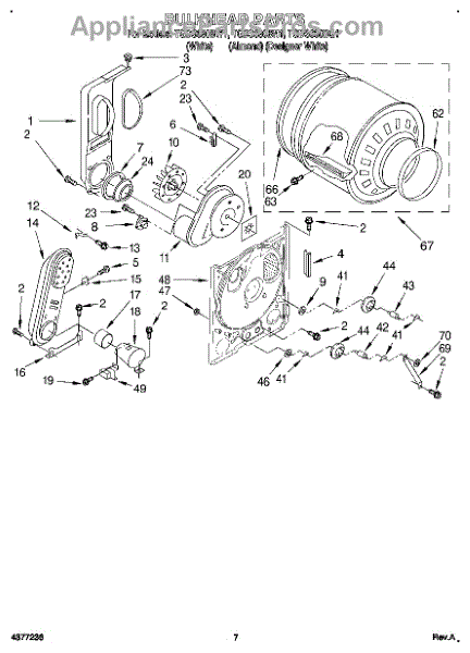 Replacement drum baffle that lifts and tumbles clothes inside the dryer for more even drying and helps prevent garments from snagging. Restores proper drum agitation to reduce noise and improve drying performance. What it does: