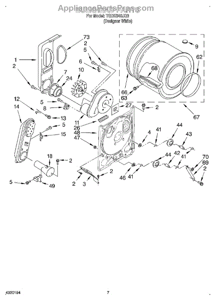This is a drum assembly intended for use with dryers. This part can be found inside the dryer and is responsible for holding clothing while a cycle is running. It holds wet laundry while loading the appliance. Over time and with use, the drum assembly can start to wear out. This can cause the dryer to squeal, start and stop during a cycle, make buzzing noises, or seize up.If the drum assembly is damaged, it will need to be replaced. Make sure to have basic tools and a pair of work gloves ready. The dryer should be turned off and unplugged from the wall. Raise the top panel, remove the front panel, and then remove the drum. The drum support roller should be taken out and installed on the new drum. Reinstall with the new component and reassemble all parts before use.The drum assembly is made to be used with dryers and washer/dryer combos from Inglis, Estate, Admiral, Crosley, Roper, Magic Chef, Amana, KitchenAid, Maytag, Kenmore, and Whirlpool. It is a genuine OEM replacement part that is sourced directly from the manufacturer. The part is sold on an individual basis.