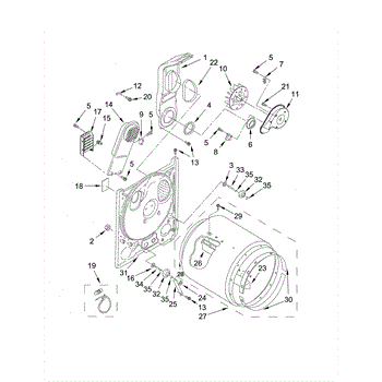 This blower housing assembly directs airflow from the dryer's drum to the exhaust, helping the appliance vent properly for efficient drying. It replaces a damaged or cracked housing to restore correct air path and reduce airflow loss. What it does: