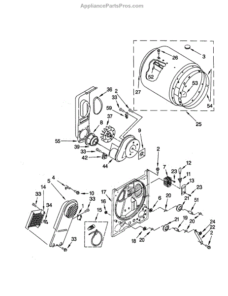 The heater box houses your dryer's heating element and screen. Replace this component when rusted, corroded, or the screen is damaged causing snags or stains.