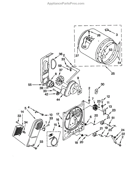 Replaces a cracked, dented, or damaged dryer drum bulkhead. This front drum component restores smooth tumbling action when the original is worn or broken.
