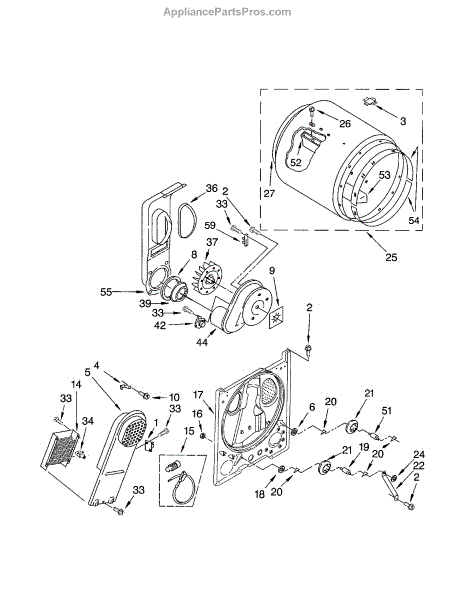 Replaces a cracked, dented, or damaged dryer drum bulkhead. This front drum component restores smooth tumbling action when the original is worn or broken.