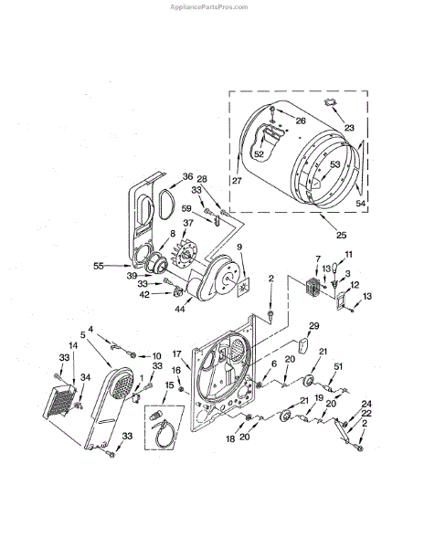 The heater box houses your dryer's heating element and screen. Replace this component when rusted, corroded, or the screen is damaged causing snags or stains.