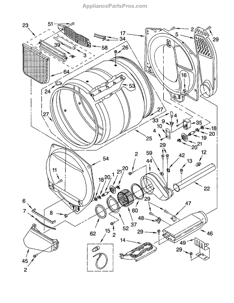 Replace a worn or damaged dryer drum that's causing noise, poor tumbling, or clothing snags. Sheet metal construction holds laundry during cycles.