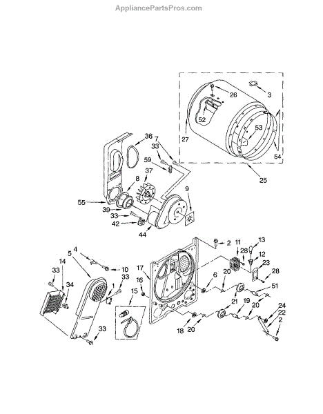 The heater box houses your dryer's heating element and screen. Replace this component when rusted, corroded, or the screen is damaged causing snags or stains.