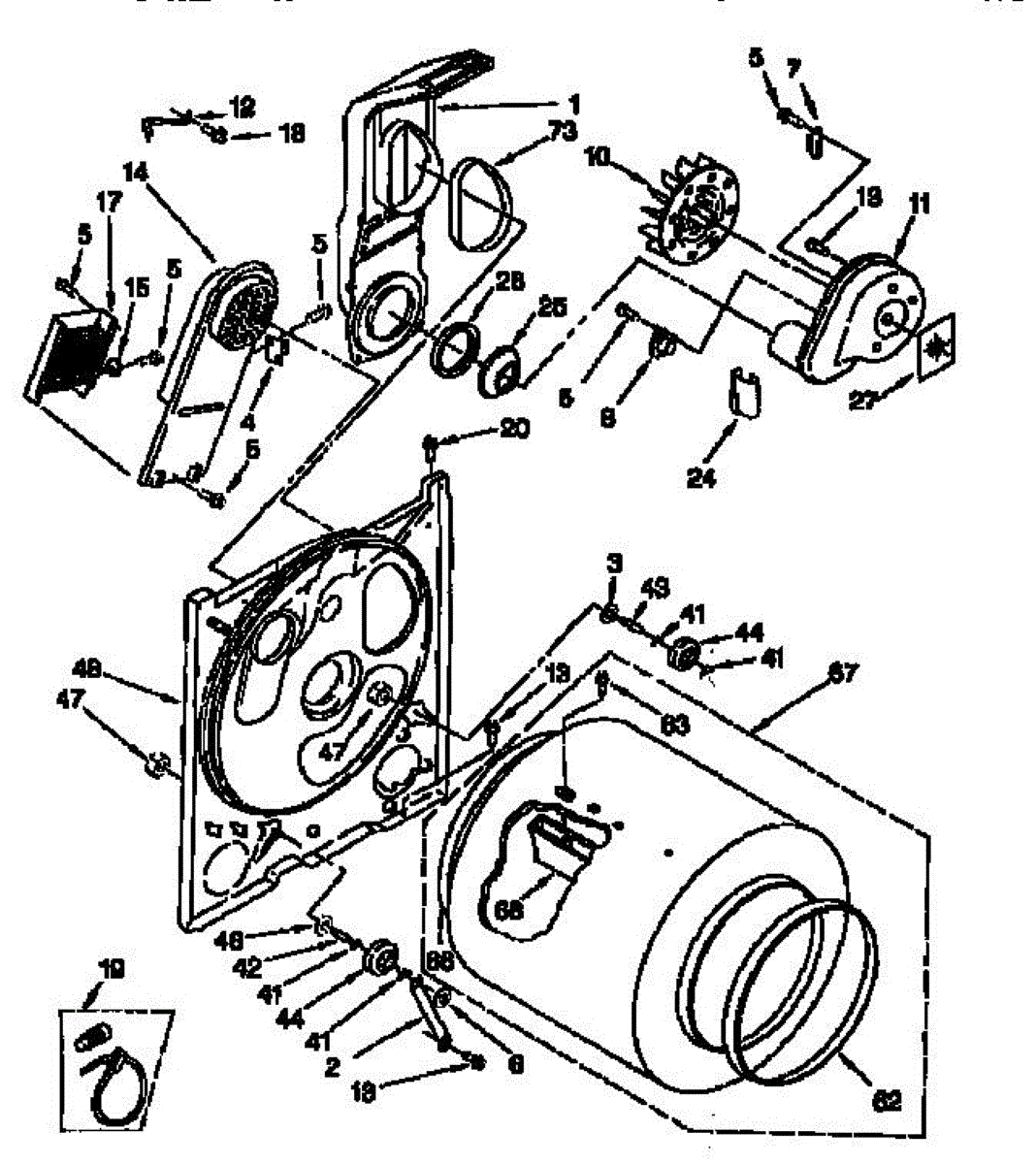 Complete drum assembly for dryers. Houses and rotates laundry during cycles. Replace if cracked, warped, damaged, or worn from extended use.