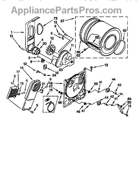 The heater box houses your dryer's heating element and screen. Replace this component when rusted, corroded, or the screen is damaged causing snags or stains.