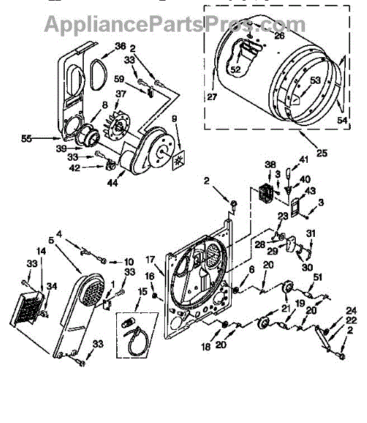 Dryer not drying or taking too long? A cracked blower housing disrupts airflow. This assembly restores proper venting for efficient drying cycles.
