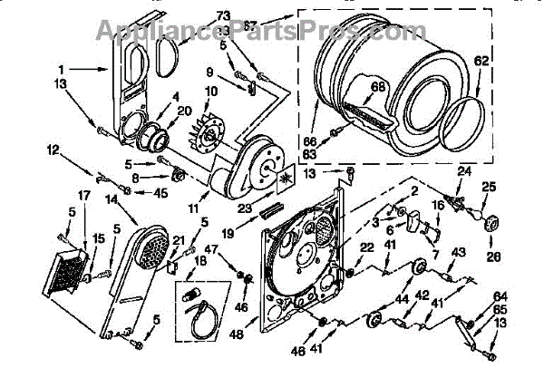Complete drum assembly for dryers. Houses and rotates laundry during cycles. Replace if cracked, warped, damaged, or worn from extended use.
