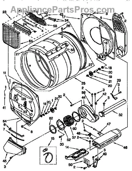 Seals the joint between the lint screen housing and blower assembly. Replace when worn to prevent lint buildup in cabinet. Confirm fit by model number.
