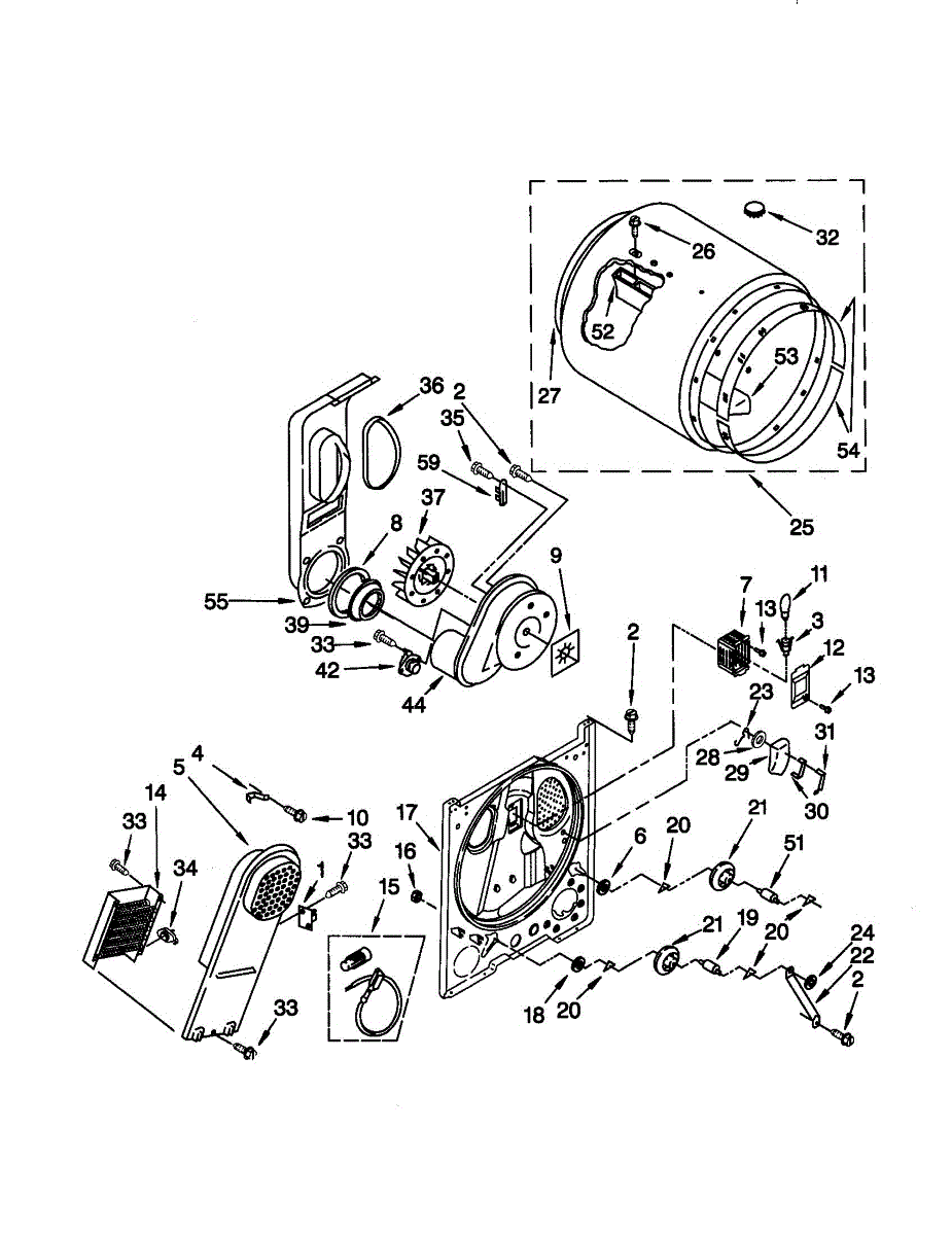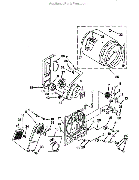 The heater box houses your dryer's heating element and screen. Replace this component when rusted, corroded, or the screen is damaged causing snags or stains.