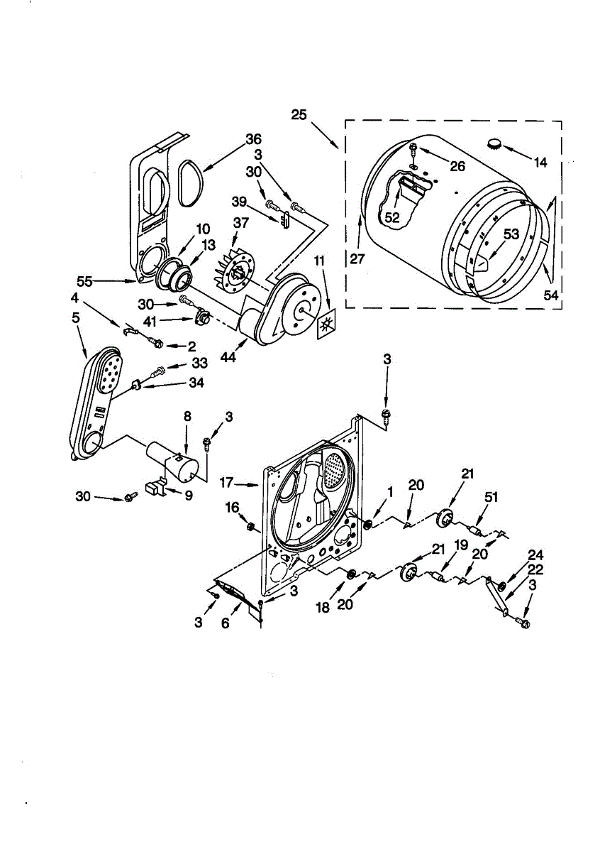 Rear drum support roller kit for dryers. Mounts behind the drum to maintain alignment and smooth rotation. Replace when rollers are worn or damaged.