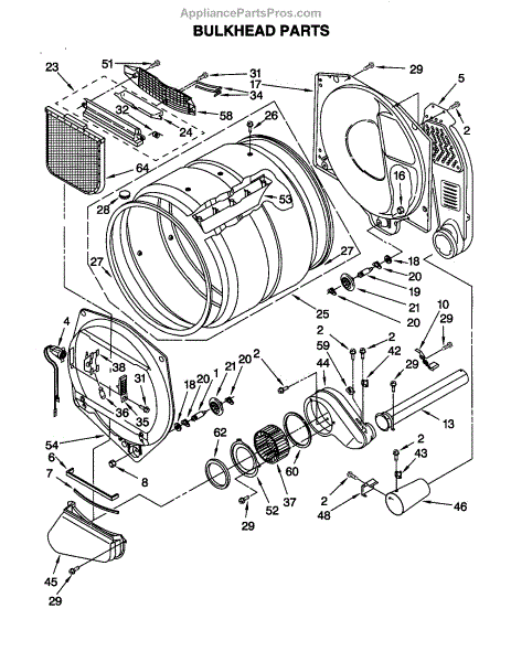 Replacement dryer drum front bulkhead panel. Installs at the front of the drum assembly. Needed when cracked, warped, or damaged from wear.