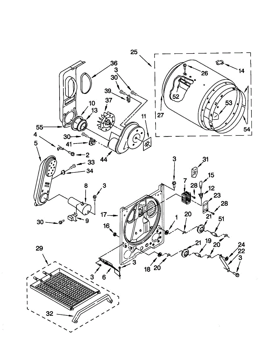Seals the rear drum edge to contain hot air and improve drying efficiency. Replace if worn, torn, or causing noise. Confirm fit with your model number.