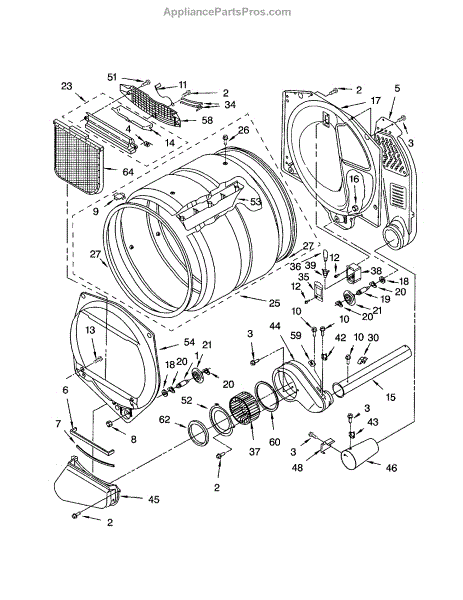 Replace a worn or damaged dryer drum that's causing noise, poor tumbling, or clothing snags. Sheet metal construction holds laundry during cycles.