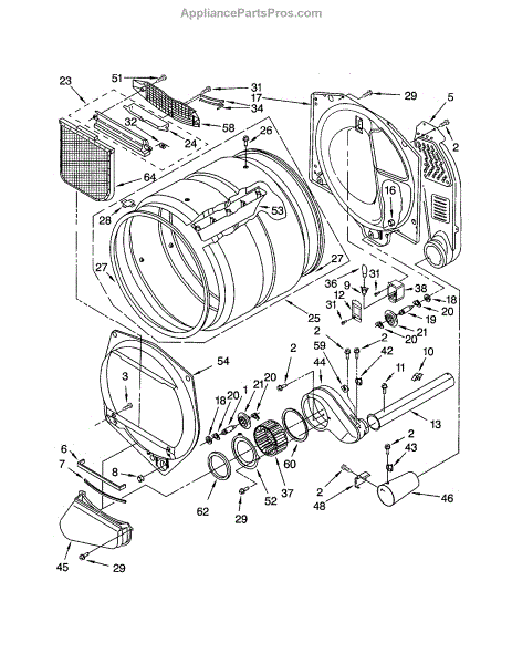 Replace a worn or damaged dryer drum that's causing noise, poor tumbling, or clothing snags. Sheet metal construction holds laundry during cycles.