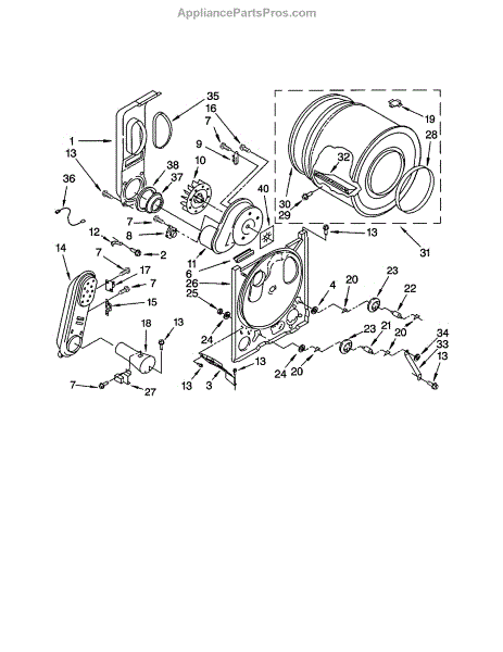 Seals the rear drum opening to prevent air leaks and reduce noise. Replace if worn, frayed, or causing rattling sounds. Confirm fit with your model number.