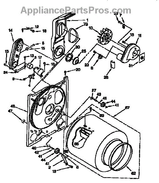 Complete drum assembly for dryers. Houses and rotates laundry during cycles. Replace if cracked, warped, damaged, or worn from extended use.